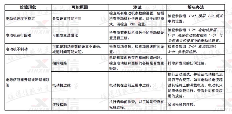 | 17 | 控制字超时 | X | X | 没有信息传送到变频器。 | |